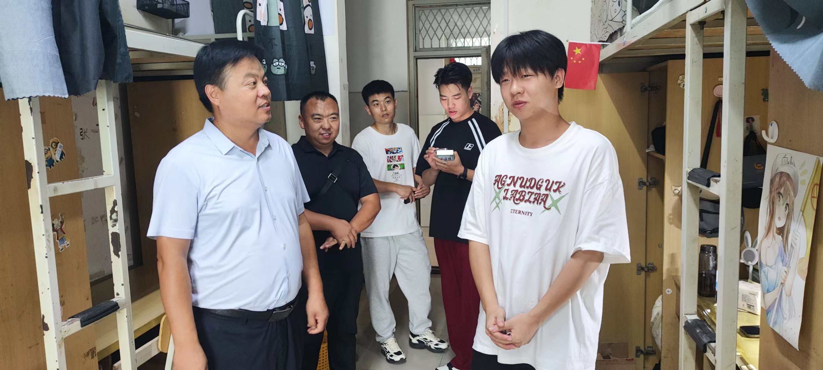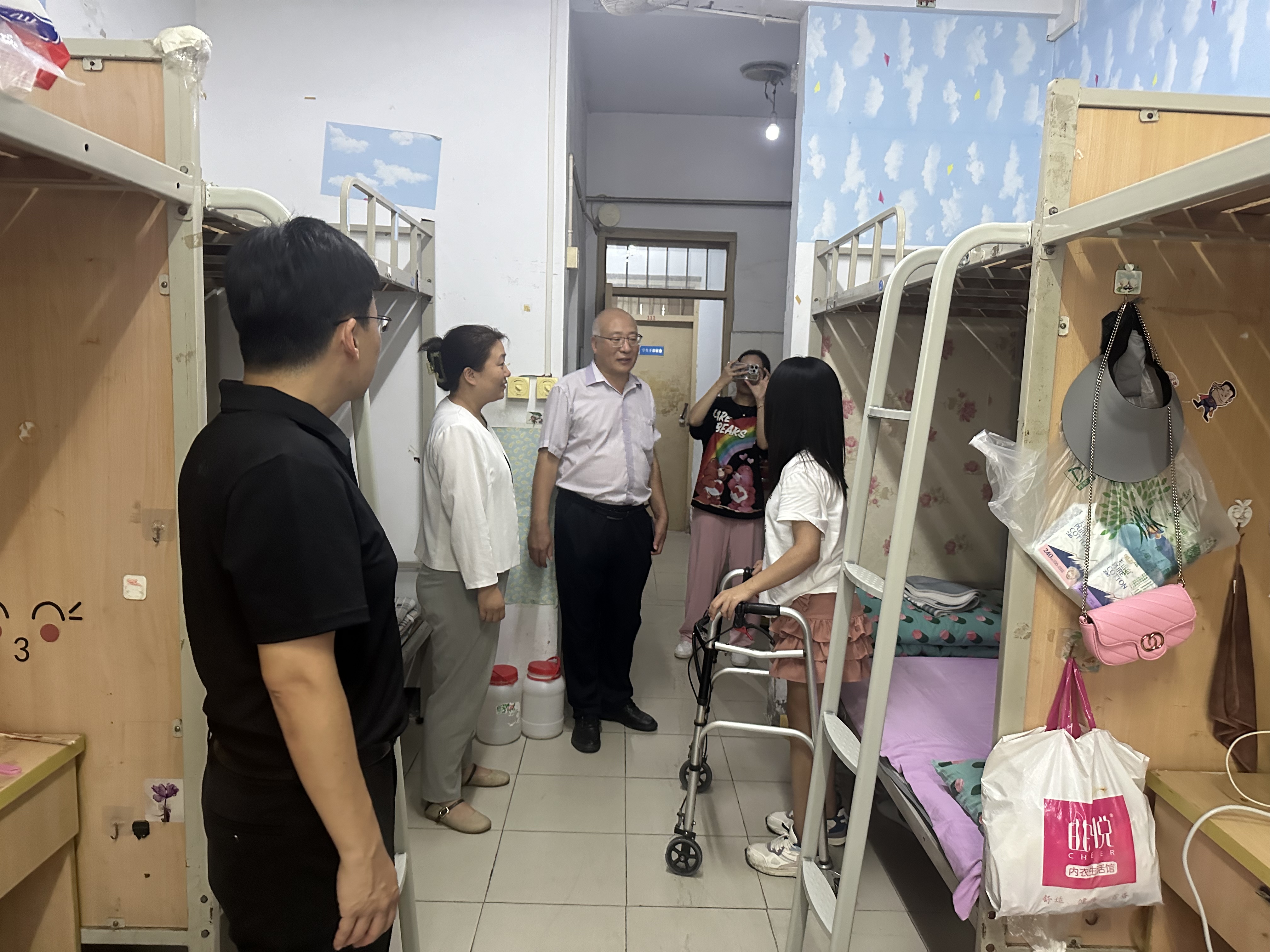 为深入了解员工生活状况,加强师生联系,8月31日,太阳成集团tyc122cc深入员工宿舍开展走访活动。公司班子带队,全体辅导员跟随,共同走进员工宿舍,传递公司关怀。