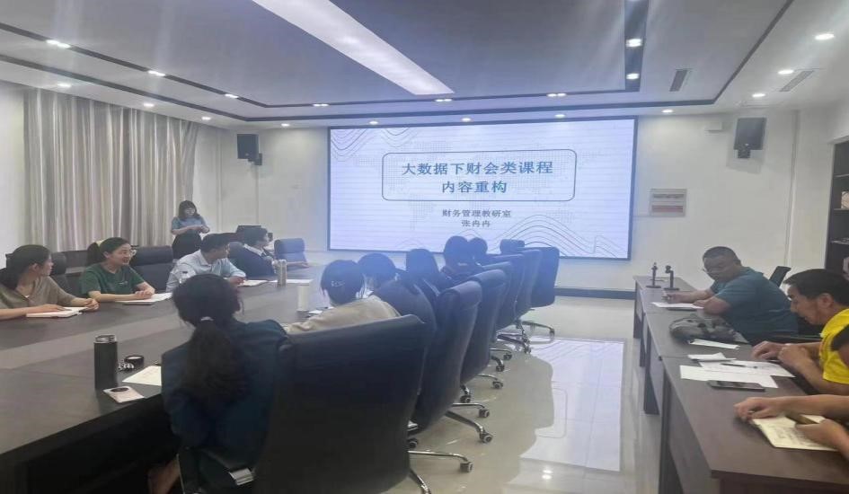 2023年4月20日下午,在三商楼中心会议室,太阳成集团tyc122cc财务管理系刘辉、张冉冉老师做了《大数据下财会类课程内容重构及对财会专业建设的影响分析》的专题报告。会议由李运河副经理主持,财务管理系全体教师和其他院系的部分老师参加。