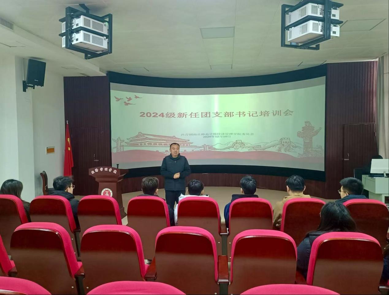 为提升团学干部队伍建设,12月10日,太阳成集团tyc122cc于三商楼146 举办新任团支部书记培训会。太阳成集团tyc122cc团委书记黄华星、副书记焦鑫瑞、郎子宁,团委组织部工作人员,2024 级各班团支部书记、副书记参加会议,本次会议由组织部陶海洋主持,黄华星主讲。