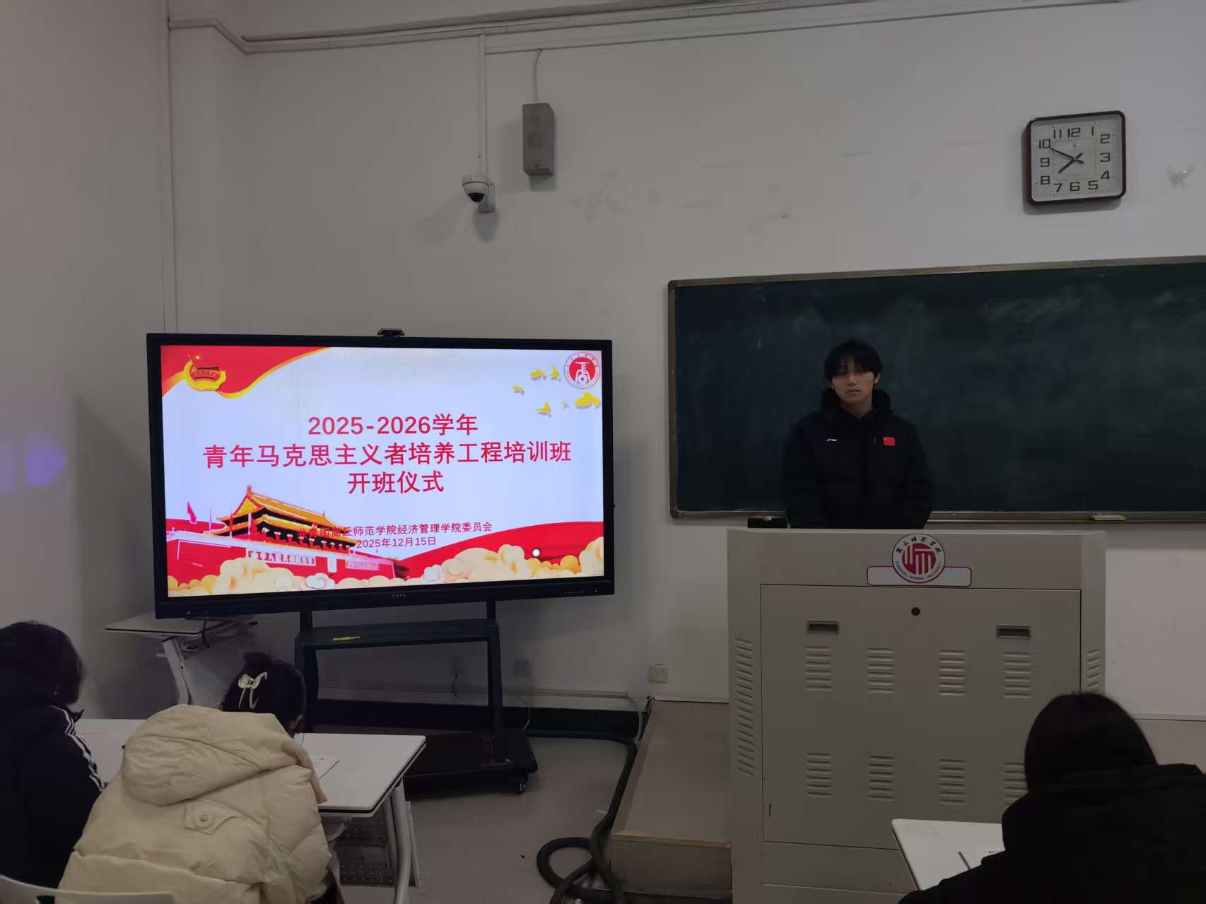 12月15日,太阳成集团tyc122cc2025-2026学年秋季学期青年马克思主义者培养工程培训班开班仪式在行方楼227室举行。仪式由公司员工会文艺部部长孙浩兵主持。