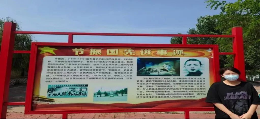 7月28日上午,团队成员来到节振国纪念馆。在讲解员的引导下,团队成员参观家乡红色革命古迹,了解并学习到了党员节振国筚路蓝缕、艰苦奋斗的伟大革命精神,感受他激情燃烧的革命岁月。在充分学习和参观红色革命基地后,团队成员进行了线下宣传活动,向当地社区的居民介绍党史的相关知识。在宣传活动中,团队成员相互分享实践结果,并讲述在家乡红色革命古迹参观时了解到的中国共产党百年来的不懈努力。