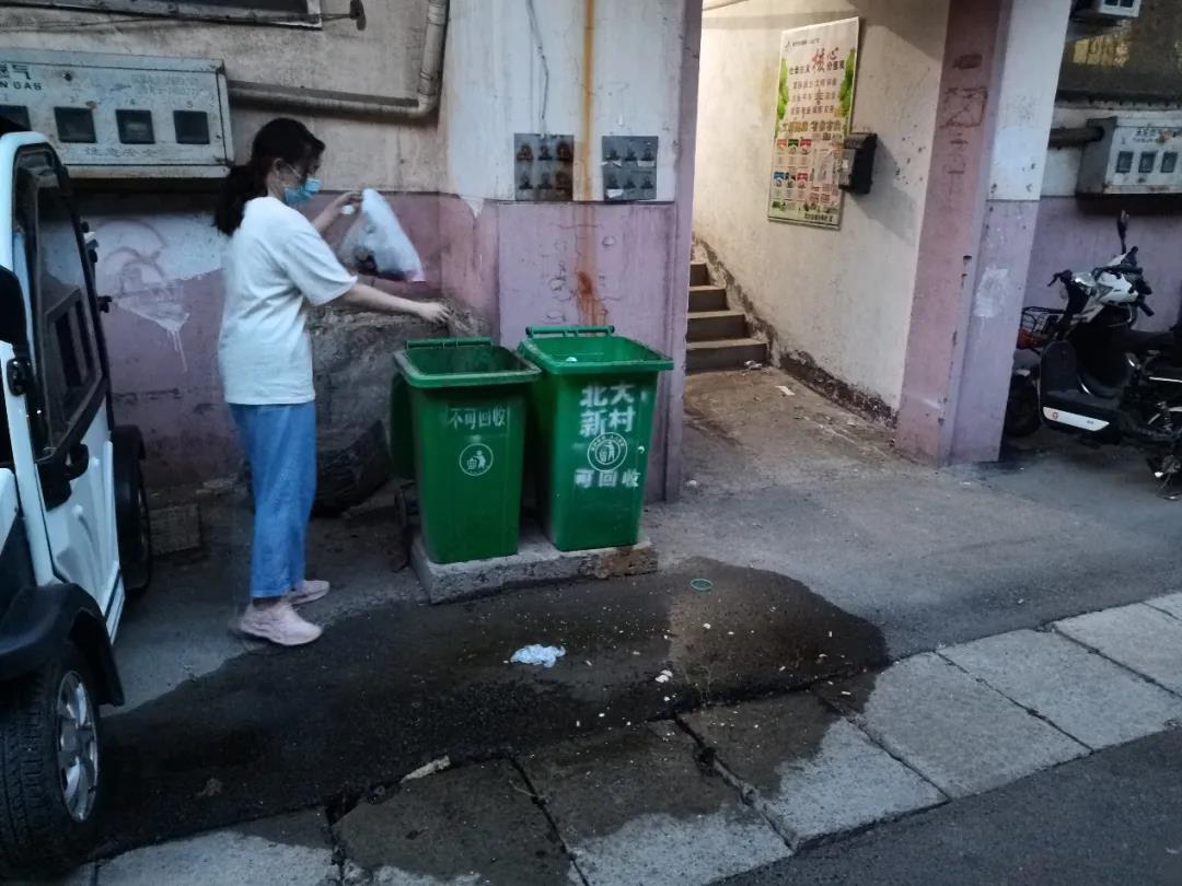 大雨冲刷后,许多生活垃圾堆放在小区和家属院内,散发出难闻的气味,影响着人们的生活。团队成员跟随社区工作人员前往同发公司家属院内清理垃圾,把垃圾按照可回收和不可回收打包好,等待垃圾清运公司前来运走。