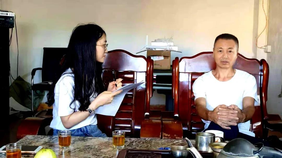 图为党史学习教育结束后,横山村村民在家中接受采访部成员采访,细说父辈的红色往事。中国青年网通讯员 彭思捷 摄