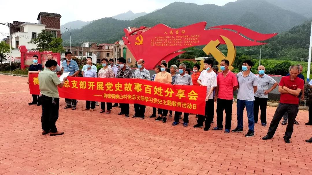 图为横山村党总支部在前锋镇人民大舞台组织开展党史故事百姓分享会,活动部成员作为后勤帮忙拉起横幅。村民热情参与活动,成员也积极融入村民当中。中国青年网通讯员 彭思捷 摄