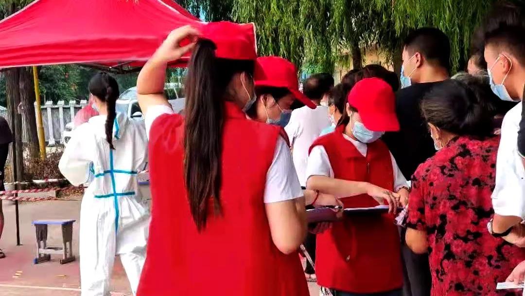 图为宣传部成员在前锋镇疫苗接种点等候处进行党建宣传,鼓励横山村村民报名参与党史学习教育。中国青年网通讯员 彭思捷 摄