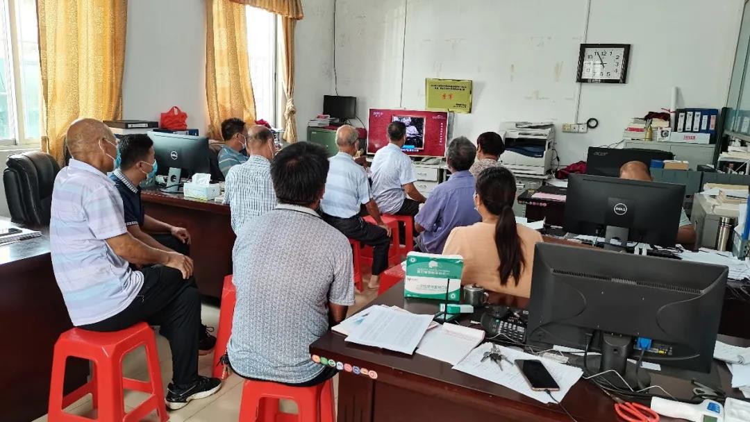 图为大江头党群活动中心会议室,57岁老党员受邀参加座谈会,活动部成员与村民一起探讨党史学习心得。中国青年网通讯员 彭思捷 摄