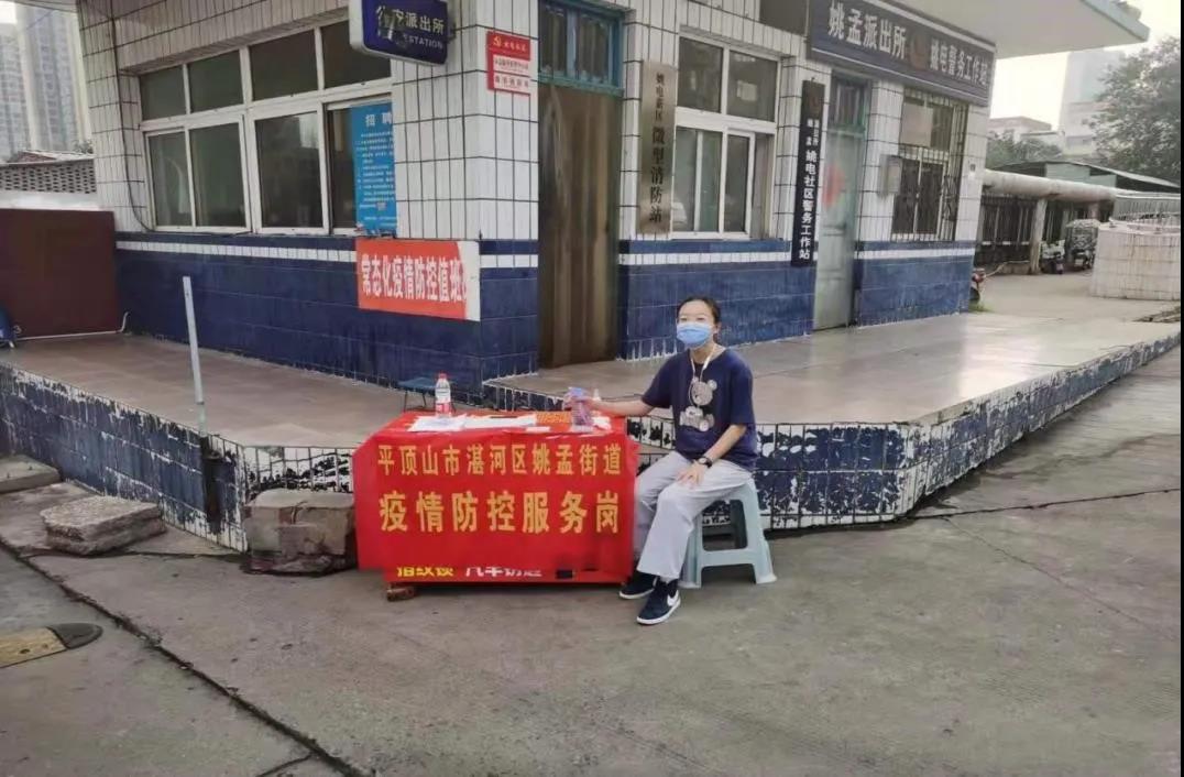 实践人员在平顶山市湛河区姚孟街道疫情防控服务岗就位开展志愿活动,手拿测温计对往来人员测量体温,并用酒精对往来人员进行酒精消毒,做好防疫措施。实践人员提前从正规渠道掌握了正确的防疫知识,以便向人们普及专业的防疫知识,提高人们的防疫意识。