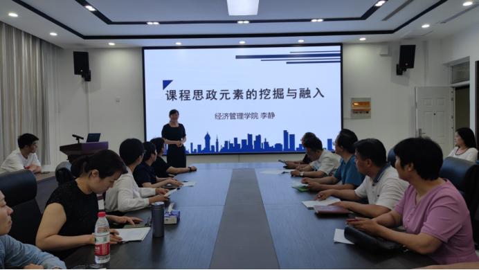 会上,全体老师观摩了李静老师的课程思政示范课展示,学习怎么把思政元素润物细无声的融入到教学当中。