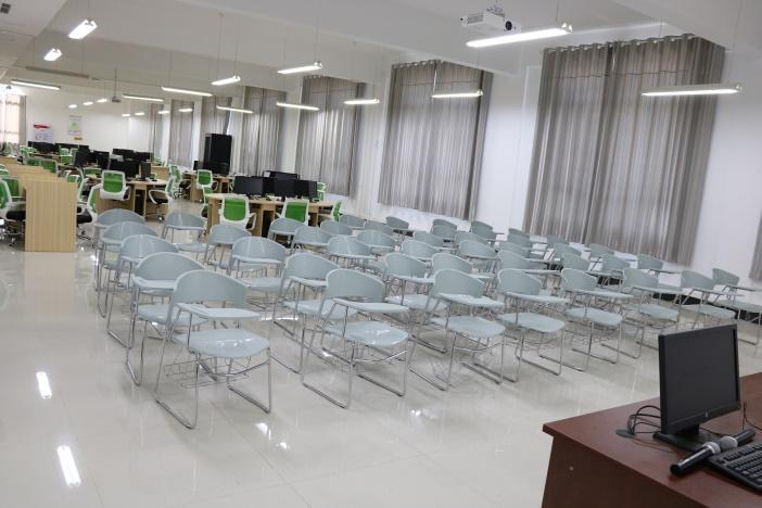 设备设施:电脑67台,投影仪2部,圆桌10台,方桌2个,扇形桌2个,椅子60把,话筒2个,音箱1个。